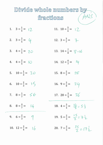 Divide An Integer By A Fraction Worksheet Teaching Resources