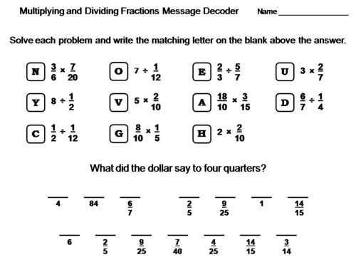 Multiplying And Dividing Fractions Worksheet Math Message Decoder Teaching Resources